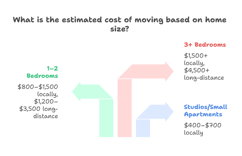 - 1–2 bedrooms: $800–$1,500 locally, or $1,200–$3,500 long-distance.